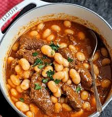 Deixe o feijão de molho por 1 hora em água quente. Escorra e acrescente água e cozinhe em uma panela de pressão por 20 minutos. Refogue a costelinha de porco com azeite, alho, pimentão, pimenta-de-cheiro e cebola, cozinhe e adicione o feijão e tempere com páprica, sal e pimenta-do-reino, e tempero verde.