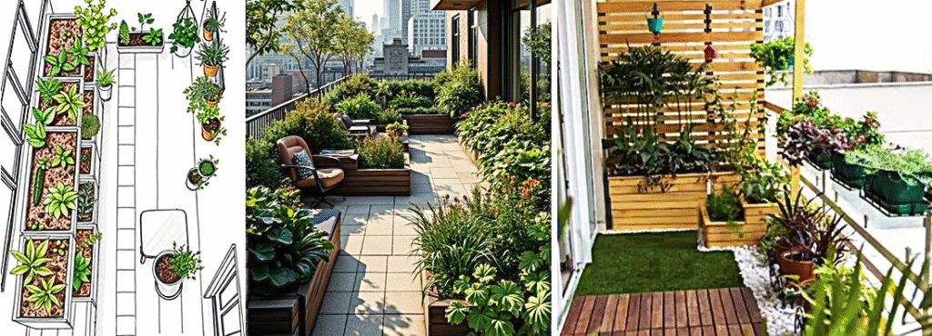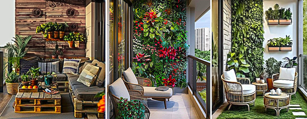 Um jardim vertical pode transformar uma varanda pequena em um refúgio exuberante. Essas configurações utilizam o espaço da parede de forma criativa, permitindo que se aproveite a vegetação sem ocupar muito o espaço no chão.