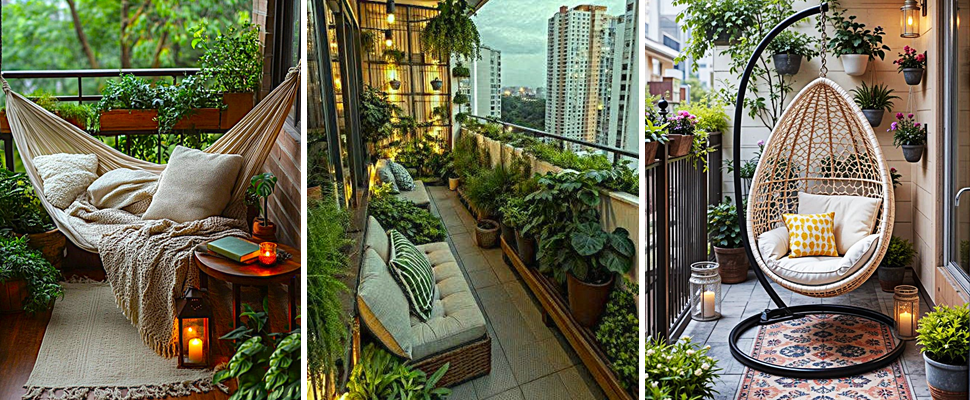 Uma rede pode transformar uma varanda pequena em um refúgio aconchegante. Imagine relaxar em uma rede macia e trançada, cercada por vegetação, que convida ao relaxamento e oferece uma fuga perfeita do estresse diário.