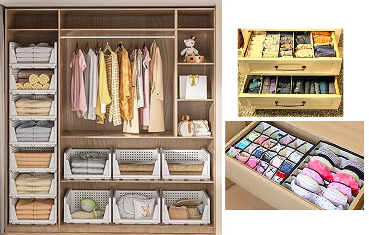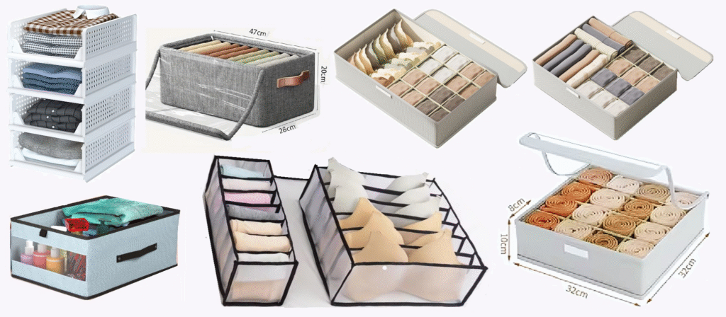 Uma das formas mais práticas e rápidas de organizar seu armário seria usar cestos e caixas organizadoras. Existem diversos tipos de caixas e componentes para armazenamento de roupas e acessórios no mercado, para organizar seu armário ou closet e maximizar o espaço.