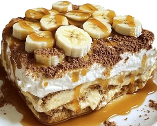 Montagem – Em um travessa refratária faça camadas com o creme intercalando com os biscoitos embebidos no leite e finalize com o o ganache e o caramelo de banana. Se for ao gosto, intercale o caramelo de bananas no meio de uma camada de biscoitos. Leve para geladeira por 2 horas e sirva em seguida. (Travessa refratária 20 x 20 cm).