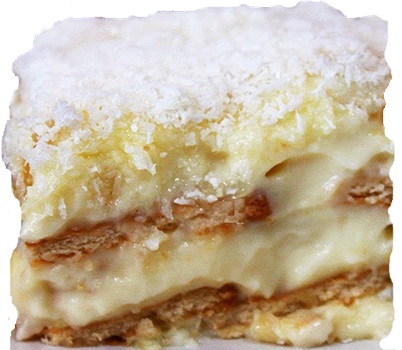 • Montagem – Em um refratário monte o pavê com o creme intercalando com os biscoitos embebidos no leite e o caramelo de abacaxi. Finalize com o creme e o caramelo de abacaxi, polvilhe com o côco ralado. No meio do pavê intercale com uma camada de caramelo de abacaxi. Leve para geladeira por 2 horas e sirva em seguida.