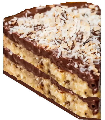 Creme – Em uma panela aqueça em fogo baixo, o leite com o leite condensado e uma garrafa de leite de côco, dissolva o amido de milho no leite frio e adicione à mistura. Mexa sempre até ficar um creme homogêneo. Para a ganache em tigela a parte, derreta o chocolate com o creme de leite e aqueça no micro-ondas e mexa até dissolver o chocolate. Montagem – em um refratário coloque uma parte do creme branco e depois uma camada de biscoitos umedecidos no leite de côco, e vá alternando as camadas de biscoito e o creme. E entre o meio de uma das camadas cubra o biscoito com parte da ganache. Por último cubra com a ganache de chocolate e polvilhe com côco ralado. Leve a geladeira por 2 horas e sirva. Travessa refratária (20 x 20 cm)