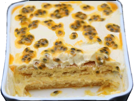 • Creme – Bata no liquidificador o leite condensado, o creme de leite e o suco de maracujá. Para a montagem molhe os biscoitos no leite e alterne camadas de biscoitos e creme. Ganache – coloque o chocolate branco em meia xícara de leite e leve ao micro-ondas para derreter e cubra o pavê. Cobertura – em uma panela coloque a água, o açúcar, o amido de milho e a polpa de maracujá, e mexa até ferver e engrossar. Espere esfriar e coloque por cima da ganache de chocolate branco.