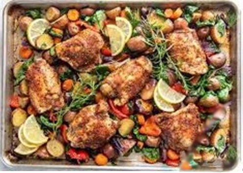 Coxa de frango assada com legumes