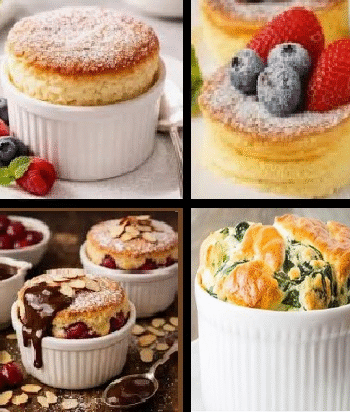 Cobertura – Bata as claras em neve, depois coloque o açúcar e continue batendo até formar suspiros. Coloque o creme de morango nas cestinhas, por cima as claras em neve e leve ao forno para dourar. Enfeite com morangos e gotas de chocolate.
