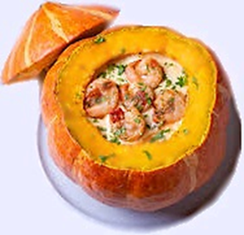 Com uma faca faça um corte em círculo em cima da abóbora, como se fosse uma tampa, mas não a retire. Envolva a moranga em papel alumínio, e coloque em uma forma e leve ao forno preaquecido a 180ºC por 1 hora. Limpe os camarões, retire a casca e a cabeça. Pique a cebola e o alho em cubos pequenos, refogue no azeite, retire as sementes e acrescente o pimentão e os tomates picados e acrescente ao refogado. Cozinhe por alguns minutos e acrescente o molho de tomate, o ketchup, o camarão e ferva por 5 minutos, e acrescente o creme de leite, cozinhe até incorporar bem a mistura, e acrescente a salsinha. Passe para a moranga e sirva com arroz branco.