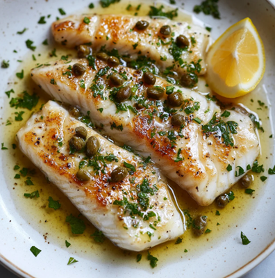 Em uma frigideira aqueça a manteiga o azeite, coloque as alcaparras escorridas e lavadas a salsinha e desligue. Retire o peixe do forno, cubra com o molho e sirva.