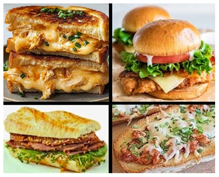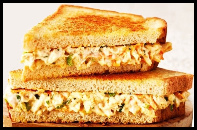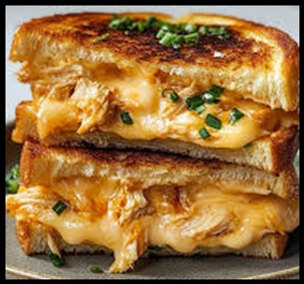 Sanduíche de frango desfiado com queijo cheddar