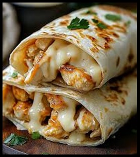 Misture o requeijão com o frango desfiado, o tomate picado e o milho. Em uma frigideira antiaderente aqueça o wrap por 1 minuto de cada lado e coloque a muçarela, o frango desfiado com o requeijão.