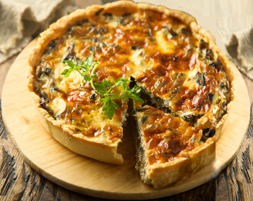 A QUICHE é uma torta aberta francesa conhecida por sua massa crocante ou folhada e recheio cremoso à base de ovos, creme de leite, queijo e diversos outros ingredientes adicionais. O nome “quiche” deriva do termo alemão “Kuchen” que significa bolo ou torta.